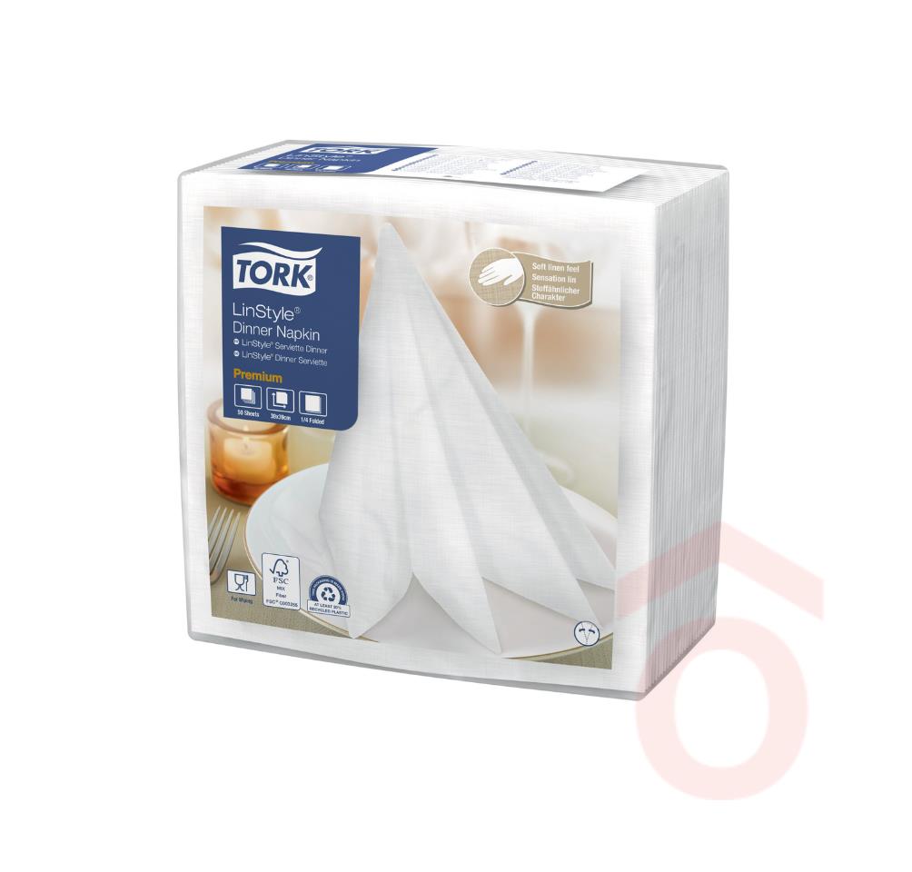 A Tork LinStyle® szalvéták kiváló választást jelentenek a prémium kiszolgálásra törekvő éttermek számára. A textilhatású, fehér színű szalvéta tökéletes kiegészítője minden elegáns asztalterítésnek. Puha tapintása, vastag szerkezete és kiváló nedvszívó képessége a valódi textilszalvéták érzetét nyújtja, miközben költséghatékony megoldást kínál.