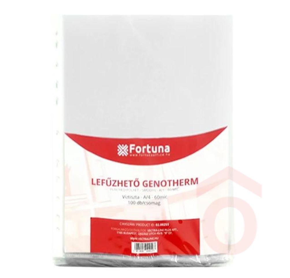 A Fortuna lefűzhető genotherm praktikus megoldás különböző iratok és dokumentumok tárolására, rendszerezésére és védelmére. Ideális irodai adminisztrációhoz, iskolai anyagokhoz vagy otthoni iratrendezéshez, amikor fontos, hogy a lapok rendezetten, lefűzve legyenek elhelyezve, és gyorsan visszakereshetők maradjanak.