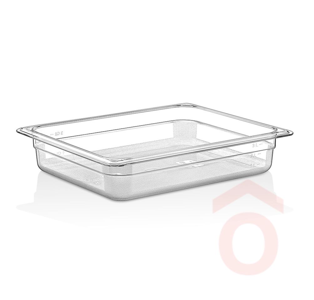 Polikarbonátból készült GN edény, ételek tárolására, szállítására, bemutatására használt tároló edény. Egymásba rakható.Nem ajánlott nehéz vegyszerekkel tisztítani. Ellenálló hőmérséklet -40 / + 99 fok között.