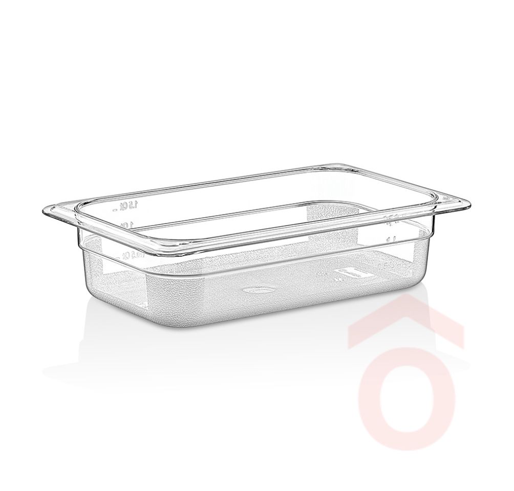 Polikarbonátból készült GN edény, ételek tárolására, szállítására, bemutatására használt tároló edény. Egymásba rakható.Nem ajánlott nehéz vegyszerekkel tisztítani. Ellenálló hőmérséklet -40 / + 99 fok között.
