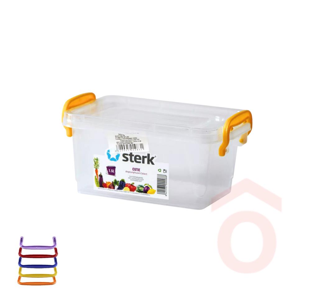 A Sterk Cutie tároló doboz praktikus fedéllel készült, amely kiváló segítséget nyújt kisebb tárgyak, ruhák, játékok és irodai kellékek rendszerezésére és védelmére. Az átlátszó műanyag megkönnyíti a tartalom áttekintését, miközben megóvja a tárolt tárgyakat a portól, nedvességtől és sérülésektől.
