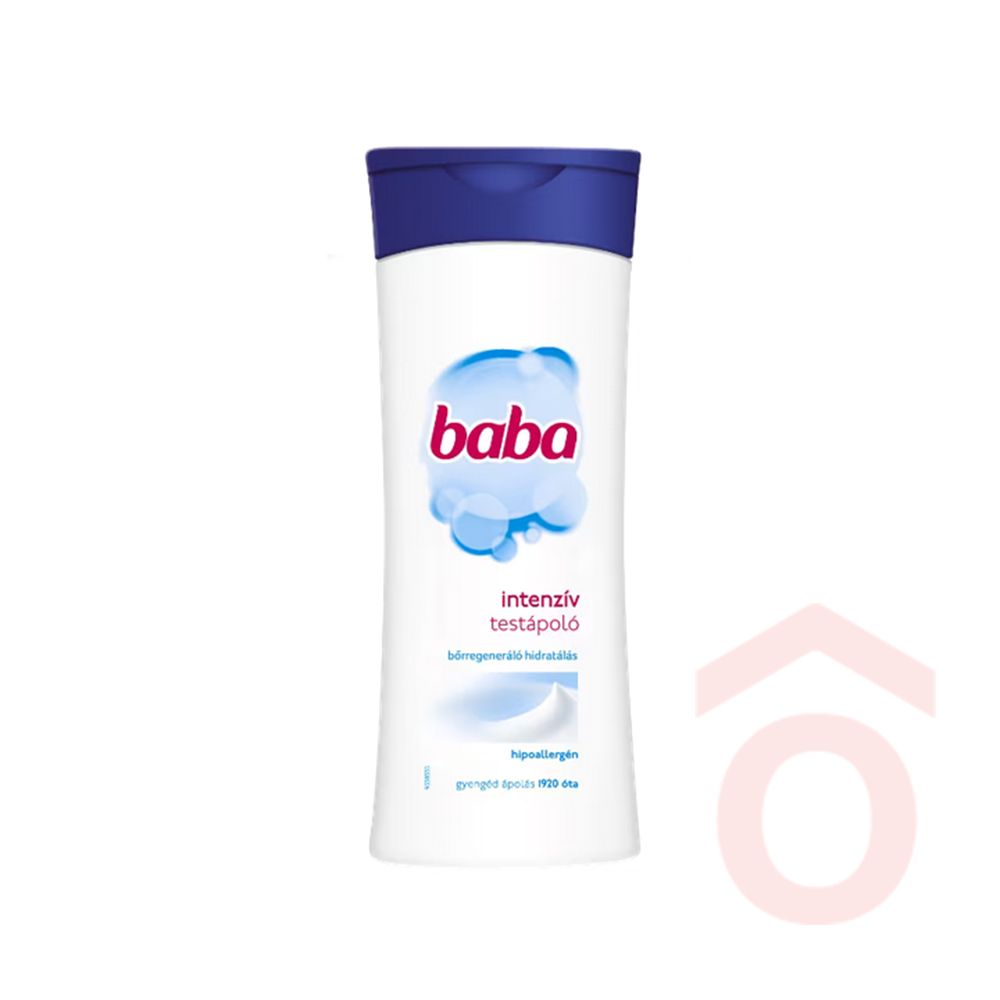 A Baba intenzív testápoló kifejezetten nagyon száraz és érzékeny bőrre lett kifejlesztve. Bőrregeneráló hidratáló formulája segít helyreállítani a bőr természetes nedvességtartalmát, enyhíti a húzódó érzést és védi a bőrt a kiszáradástól.
