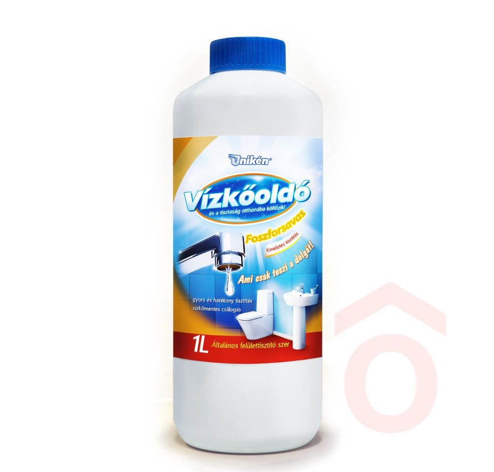 A Unikén foszforsavas vízkőoldó megbízható megoldást nyújt a makacs vízkőlerakódások eltávolítására fürdőszobai és konyhai felületeken. Alkalmas minden olyan helyen, ahol vízkő képződhet, és hatékonyan segít tisztán tartani a felületeket.