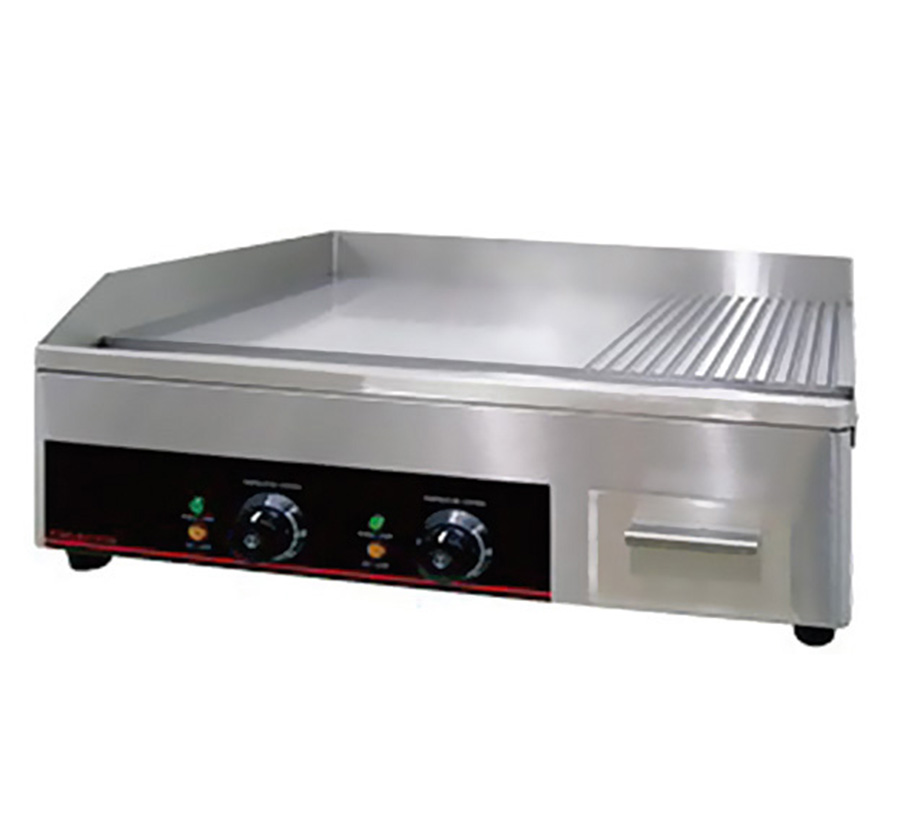 Elektromos rostlap. Szélessége 64 cm, mélysége 45 cm, magassága 25 cm. A teljesítménye 34 kW, a hálózati igénye 230 V. Burkolata rozsdamentes acél. A grill lap acélból készült, vastagsága 1 cm. A sütőfelület 2/3 része sima, 1/3 része bordázott felületű, többek között hús, zöldség, sajt süthető rajta. Rugalmas hőmérsékletszabályozással rendelkezik, a hőmérséklet 50 és 300 Celsius fok között állítható. Speciális fiók található a készüléken az olajnak.