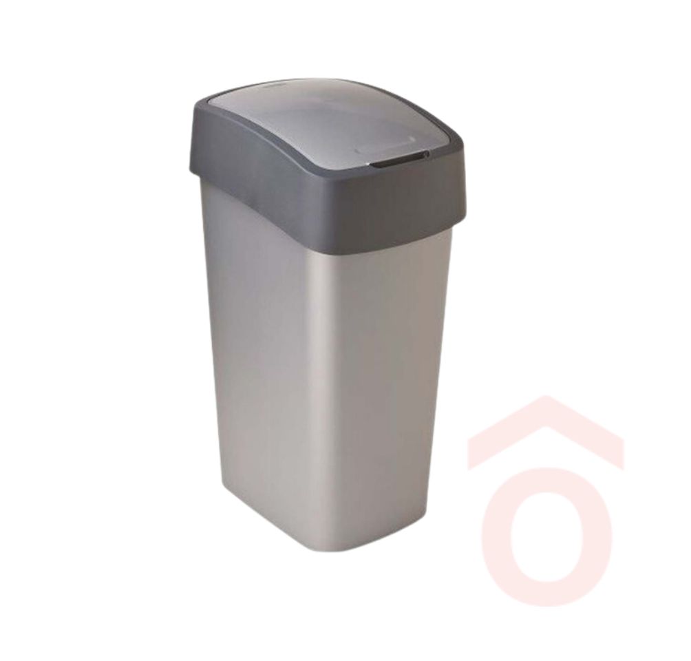 A Curver Flip Bin billenő fedeles szemeteskuka ezüst-piros színkombinációban ideális választás szelektív hulladékgyűjtéshez. Erős műanyagból készült, billenő fedele kétféleképpen is nyitható, így kényelmesen használható a háztartás bármely pontján.
