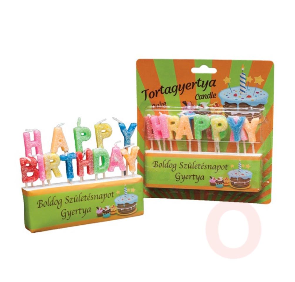 Szülinapi tortagyertya felirat - HAPPY BIRTHDAY - Terméktípus: gyertya Anyaga: viasz Kiszerelés: 13 db/cs (HAPPY BIRTHDAY) Szín: vegyes Márka: Cake Candle