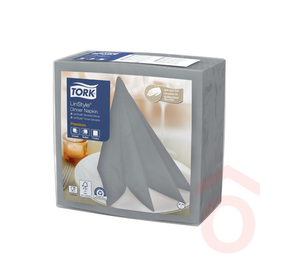 A Tork LinStyle® szalvéták stílusos, mégis praktikus megoldást kínálnak az elegáns vendéglátóhelyek számára. A szürke szín modern, semleges árnyalat, amely tökéletesen illeszkedik különféle enteriőrökhöz. A textilhatású, puha és vastag szalvéta kiváló alternatívát nyújt a hagyományos textilszalvétákkal szemben – esztétikus és higiénikus.