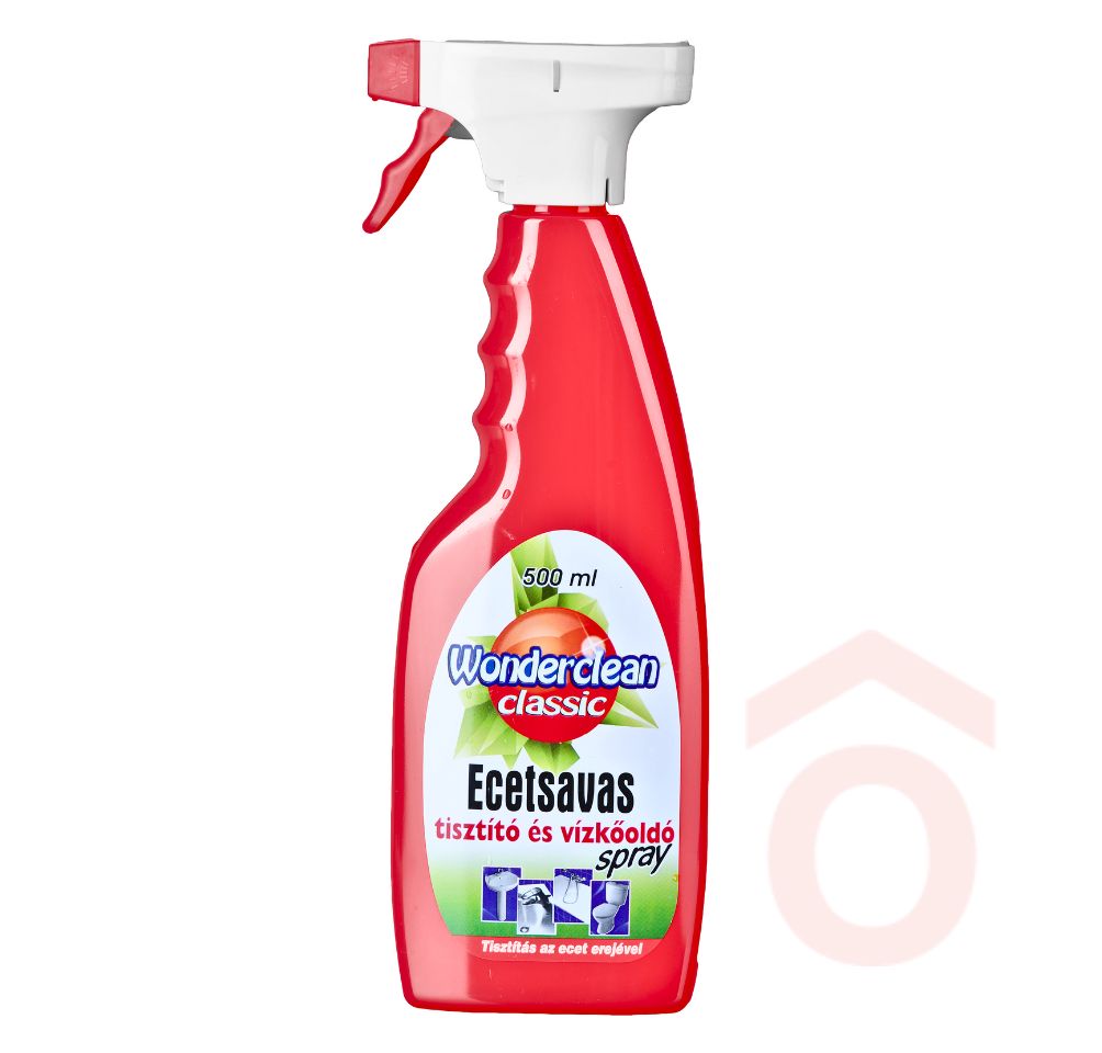 A Wonderclean ecetes tisztító nagyhatású, szórófejes kiszerelésű koncentrátum, amely gyorsan és hatékonyan távolítja el a vízkövet, szappanmaradékot és egyéb makacs szennyeződéseket. Természetes ecetsav-tartalmának köszönhetően környezetbarát választás a mindennapi takarításhoz.