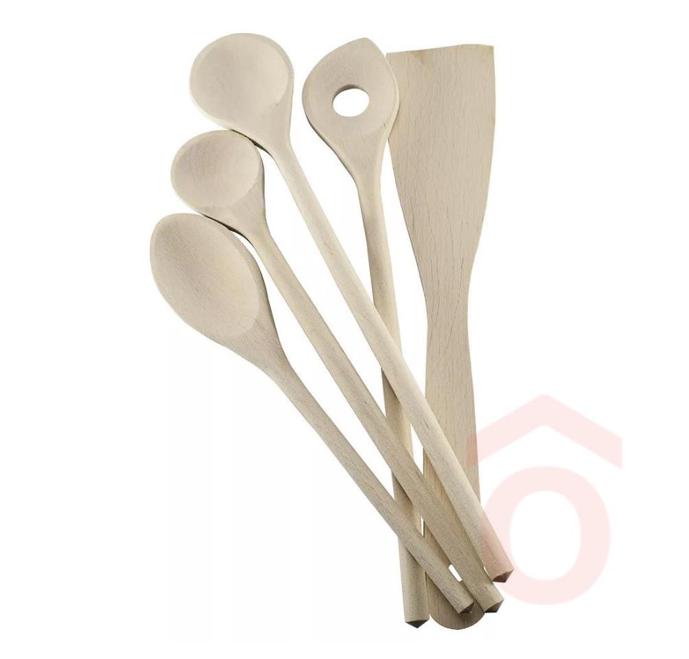 Fakanál szett, 5 db-os. 5 különböző méretű fakanalat tartalmaz. Praktikus kiszerelés. Műanyagmentes, környezettudatos konyhai eszköz. Az edények felületét nem sérti, nem karcolja, könnyen tisztítható.