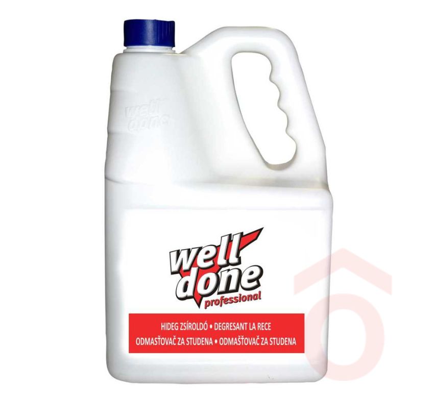 A Well Done hideg zsíroldó fokozott hatékonyságú tisztítószer, amely gyorsan és hatákonyan oldja a makacs zsír- és olajszennyeződéseket. Ideális tűzhelyek, főzőfelületek, sütőtepsik és rozsdamentes acéledények tisztítására, ahol a hagyományos tisztítószerek gyakran kevésnek bizonyulnak. Erős formulája segít visszaadni az eszközök tiszta, ápolt megjelenését, így könnyebb fenntartani a magas higiéniai szintet a konyhában.