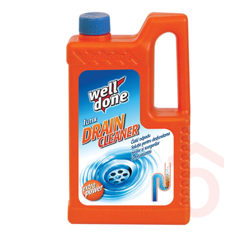 A Well Done lefolyótisztító egy erőteljes, koncentrált tisztítószer, amely hatékonyan eltávolítja a makacs szennyeződéseket és lerakódásokat a lefolyócsövekből. Egyben megszünteti a kellemetlen szagokat, biztosítva a higiénikus és akadálymentes vízelvezetést.