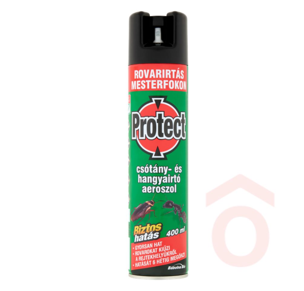 A Protect csótány- és hangyaírtó aeroszol hatékony megoldást nyújt ágyi poloska, bolha, ezüstös pikkelyke és pók ellen is. A készítmény célzott használatra lett kifejlesztve: a ködpermetet a rovarok tipikus búvóhelyeire (padló- és falrések, ajtórepedések) és vonulási útvonalaira (szeméttároló, mosogató, fürdőkád, WC környéke) célszerű fújni. Gyors hatás, egyszerű alkalmazás otthoni vagy közintézményi környezetben is.
