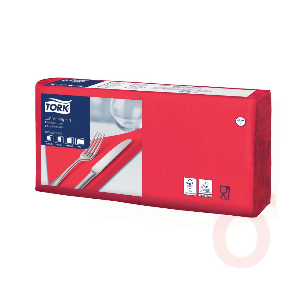 A Tork Lunch szalvéta ideális választás könnyű ételek mellé, például reggelikhez, snackekhez vagy kávézókban történő használatra. A piros szín élénk, dekoratív megjelenést kölcsönöz az asztalterítésnek. Strapabíró, 2 rétegű kivitelének köszönhetően kiváló nedvszívó képességgel bír, és megbízható a mindennapi vendéglátás során.