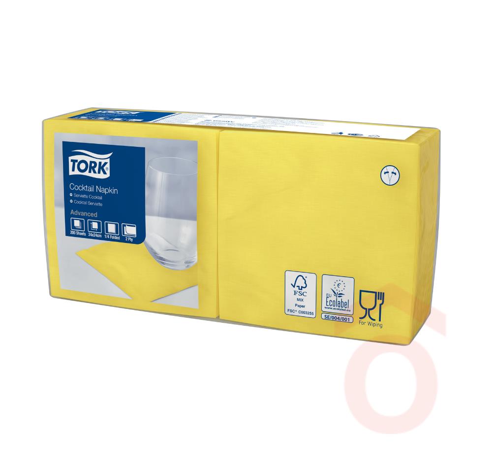 A Tork koktélszalvéták ideális választás bárokba, kávézókba és vendéglátóhelyekre, ahol a látványos tálalás is fontos szempont. A citromsárga szín vidám, energikus hangulatot kölcsönöz, míg a 2 rétegű kivitel megfelelő nedvszívást biztosít. Kompakt méretének és 1/4 hajtásának köszönhetően praktikus és helytakarékos megoldás.