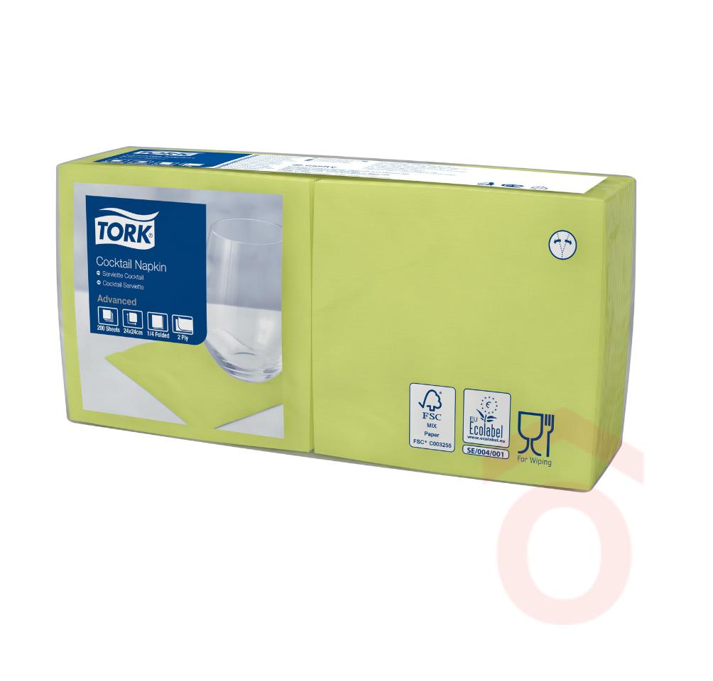 A Tork koktélszalvéták ideális választást jelentenek bárokba, kávézókba és vendéglátóhelyekre, ahol fontos a stílus és a praktikum. A lime szín friss megjelenést biztosít, a 2 rétegű kivitel pedig megfelelő nedvszívást nyújt italok mellé. A 1/4 hajtás segíti a gyors asztalterítést.