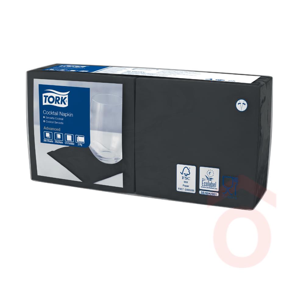 A Tork koktélszalvéták kiváló választás bárok, kávézók és egyéb vendéglátóhelyek számára. A fekete színű változat elegáns megjelenést biztosít, tökéletesen illik koktélokhoz, italokhoz. A 2 rétegű szalvéta puha és tartós, miközben higiénikus és esztétikus megoldás italok szervírozásához.
