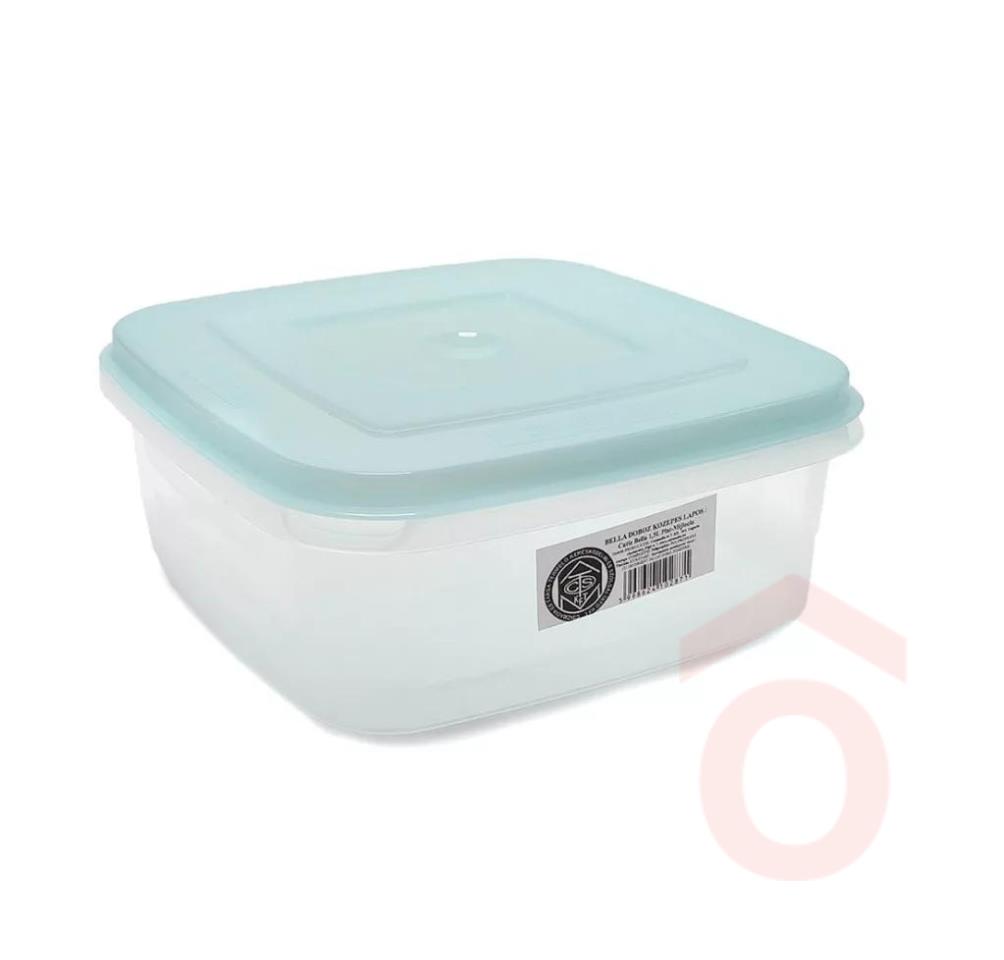 Bella konyhai tárolódoboz, ételes doboz áttetsző oldalakkal, színes tetővel. Mikrózható és fagyasztható konyhai eszköz.