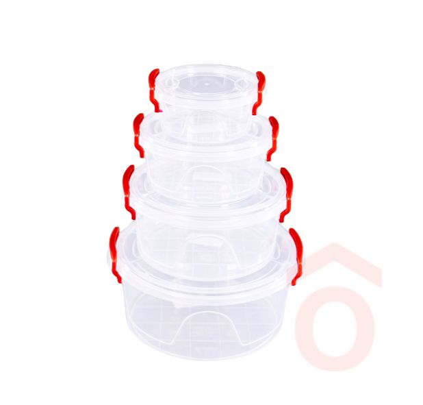 Praktikus, egymásba rakható kerek tárolódobozok négyféle méretben: kis, közepes és nagy adagok rendszerezéséhez. A szett minden darabja légmentesen záródó tetőkkel és BPA-mentes műanyagból készült, így ideális élelmiszer‐ és maradéktároláshoz.