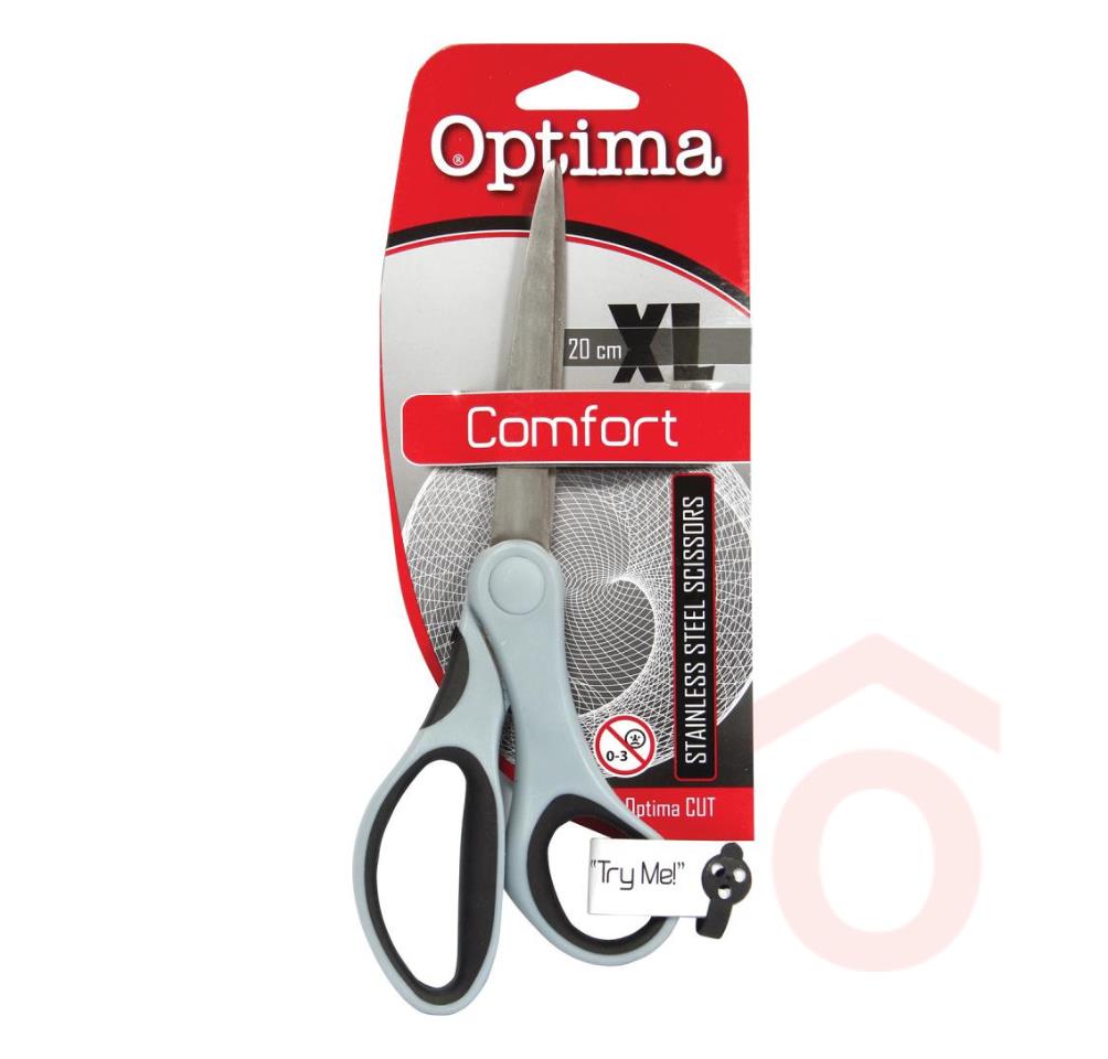 Hegyes végű, rozsdamentes acélból készült, műanyag nyelű olló. Terméktípus: olló Kiszerelés: 1 db Anyaga: rozsdamentes acél, műanyag, gumi Szín: szürke Méret: 20,5 cm Márka: Optima