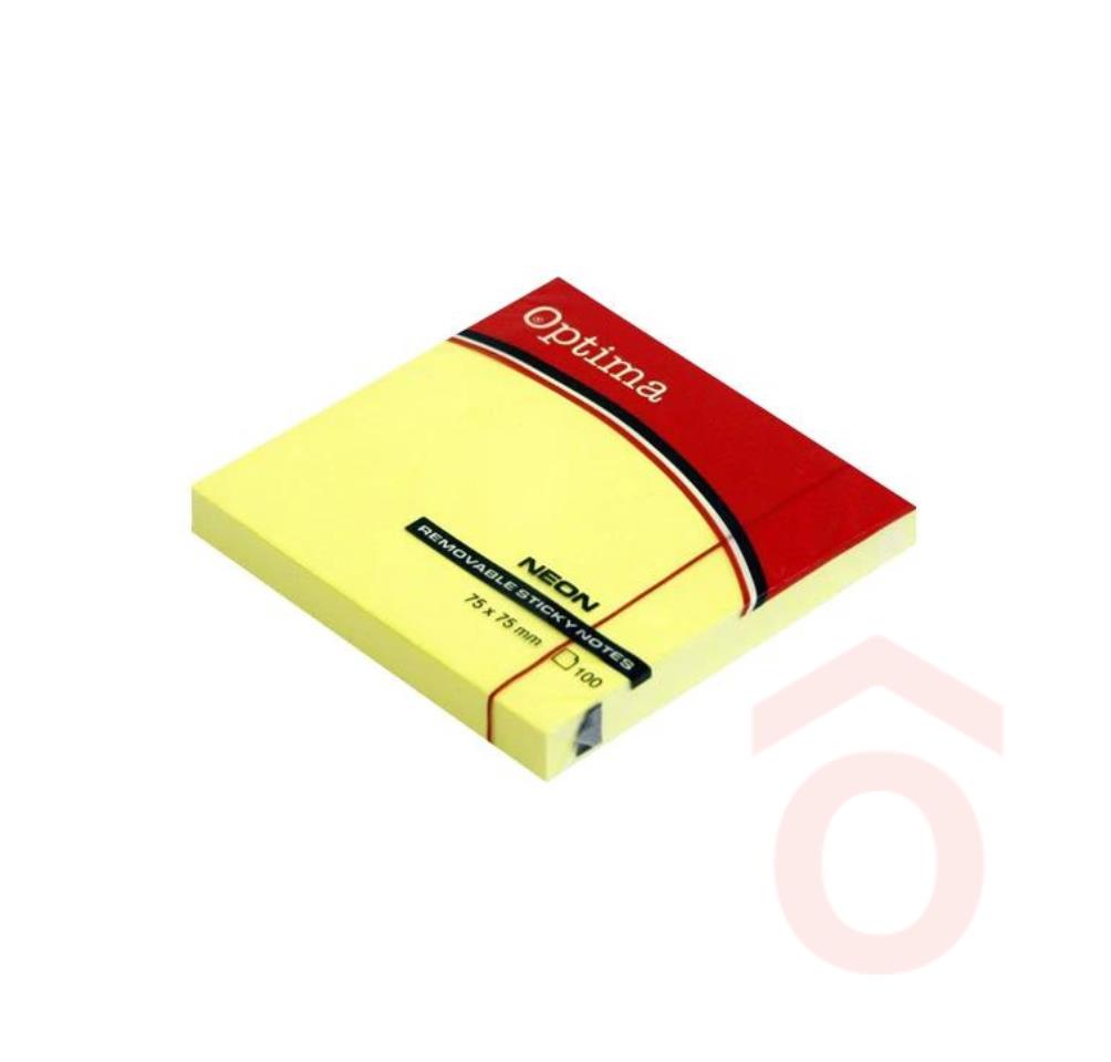 Neon színű, öntapadós jegyzettömb. Irodában és otthon egyaránt használható. Ideális üzenetek, jegyzetek készítésére. Terméktípus: öntapadós jegyzettömb Mérete: 75x75 mm Kiszerelés: 100 lap/tömb Szín: neon sárga Márka: Optima