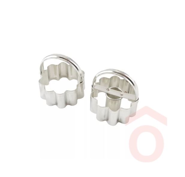 Kiváló minőségű fém linzerkiszúró formák kicsi méretben, ideális választás házi készítésű linzerekhez, aprósüteményekhez. A praktikus kialakításnak köszönhetően könnyen kezelhető, a fogantyú segíti a precíz nyomást. Tökéletes sütési kiegészítő minden otthoni konyhába vagy sütéshez használható ajándékcsomag részeként.