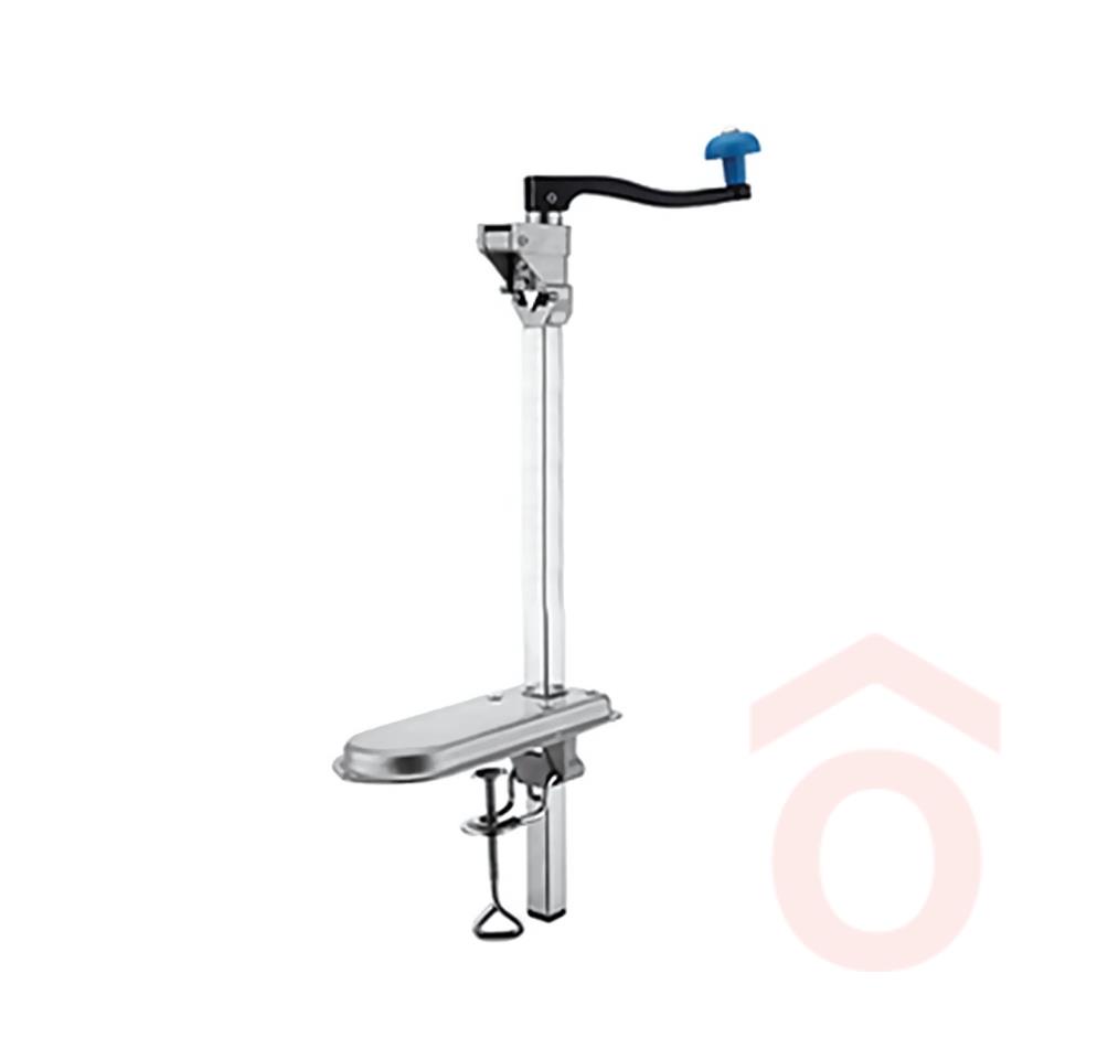 Rozsdamentes acélból készült, 59 cm-es nagyüzemi konzervnyitó, amelyet kifejezetten vendéglátóegységek számára terveztek. Az eszköz stabilan rögzíthető az asztal szélére, biztosítva a biztonságos és hatékony használatot. Karcmentes felülettel rendelkezik, és könnyedén tisztítható folyékony mosószerrel.