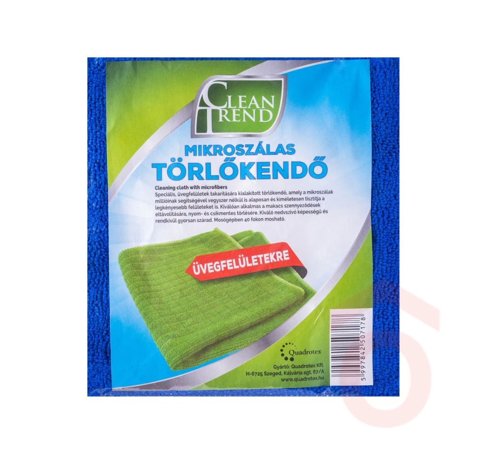 A Clean Trend mikroszálas törlőkendő speciálisan üveg- és tükörfelületekhez lett kialakítva. Különleges mikroszálas anyagának köszönhetően nyom- és csíkmentes tisztaságot biztosít, miközben kíméletes a felülethez. Tisztítószer nélkül, csupán nedvesen használva is hatékonyan eltávolítja a szennyeződéseket.