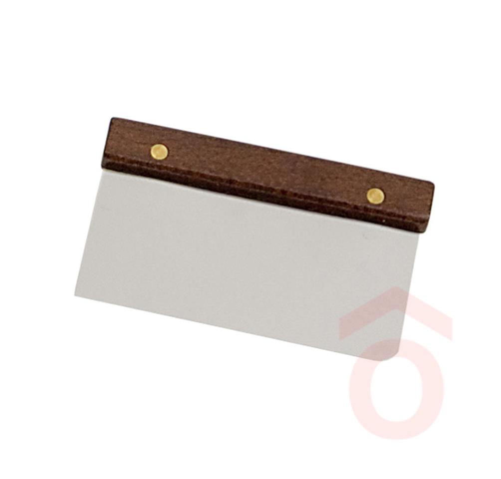 Rozsdamentes acélból készült spatula, fa nyéllel. Az acél lap szélessége 15 cm, magassága 7,8 cm, teljes magassága 11 cm. Tökéletes tésztavágó és formázó. Karcmentes, folyékony mosószerrel tisztítható.