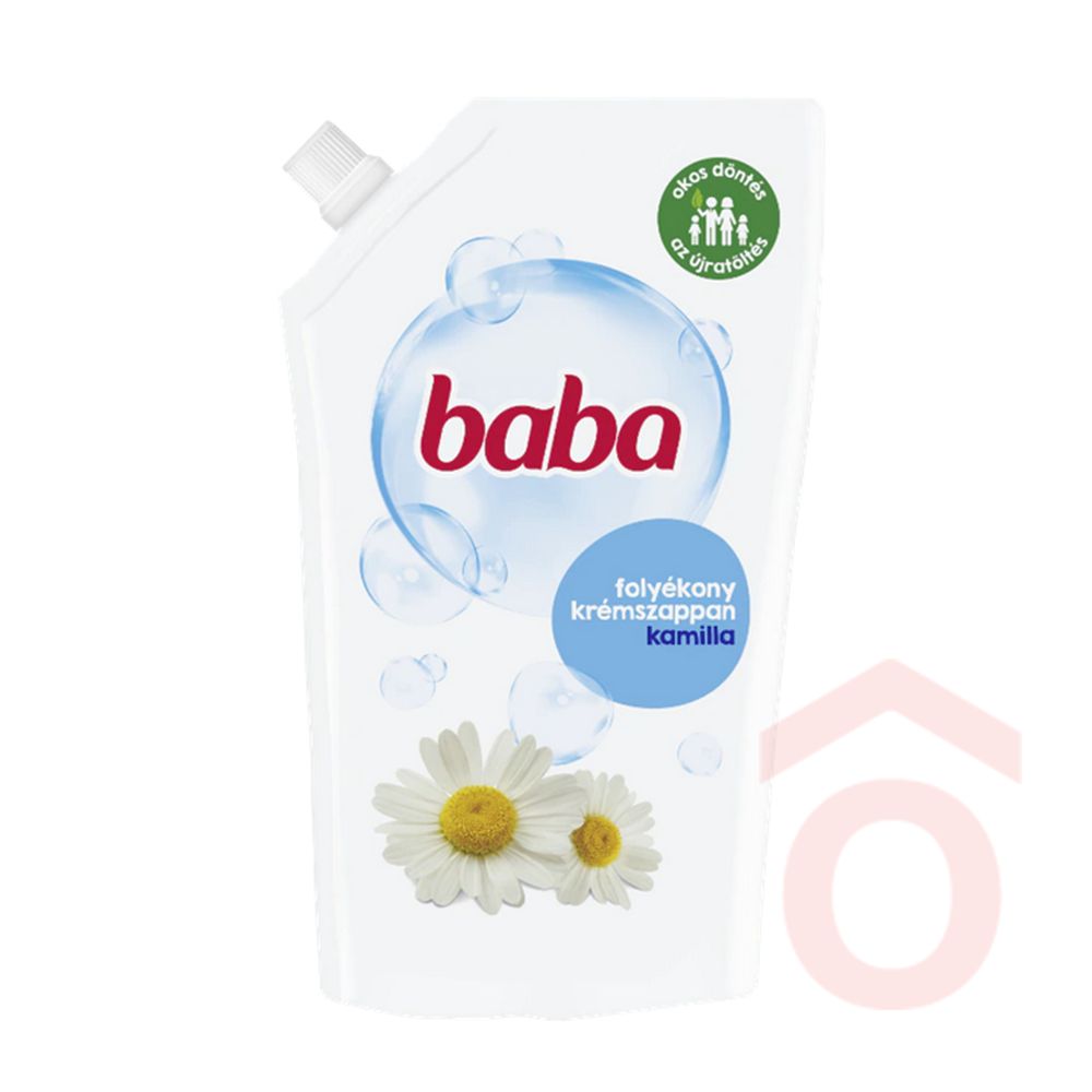 A Baba folyékony szappan utántöltő gazdaságos megoldást nyújt a mindennapi kézápoláshoz. Gyengéd krémszappan formuláját kamilla és méz kivonattal gazdagították, így segíti a bőr hidratáltságának megőrzését, miközben tisztít és felfrissít.