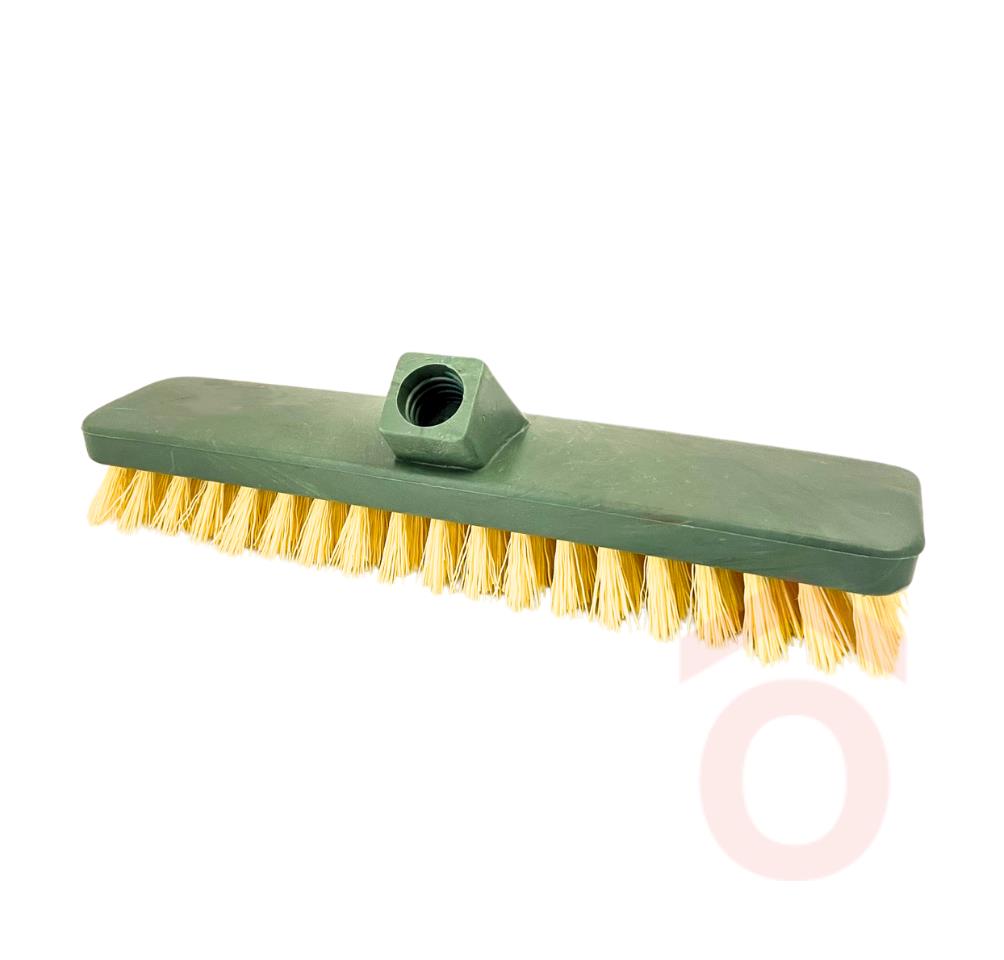 Csavarós menettel ellátott súroló kefe fej, műanyag-erős szálakkal, nélkülözhetetlen takarítóeszköz szennyeződések eltávolításához. Élelmiszeripari felhasználásra.