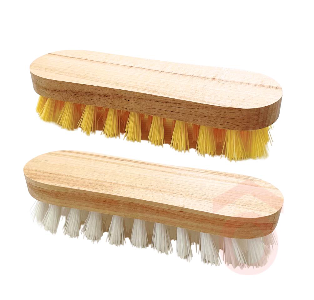 Nagy méretű piskóta alakú, fa testű súroló kefe, műanyag szálakkal, nélkülözhetetlen takarítóeszköz a foltok és szennyeződések eltávolításához.