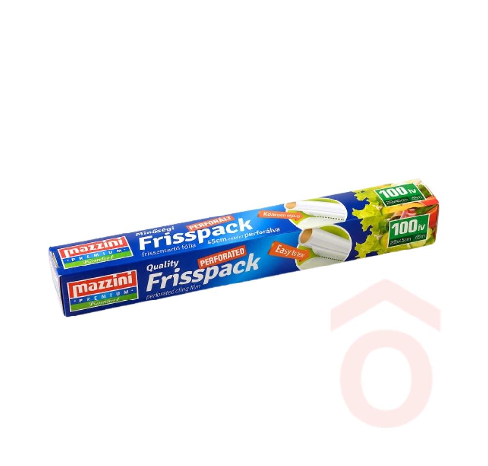 A Mazzini perforált frissentartó fólia kifejezetten praktikus választás, ha gyors, költséghatékony és higénikus csomagolást szeretnél a mindennapokban. A tekercs 45 m hosszú és 45 cm-enként perforált, így könnyen, egyenletes méretben téphető: összesen 100 db felhasználható ív (100 lapos kiszerelés) készül belőle. Az átlátszó, környezetbarát és egészségre ártalmatlan PE alapanyag ideális különféle élelmiszerek aromazáró lefedésére és csomagolására.
