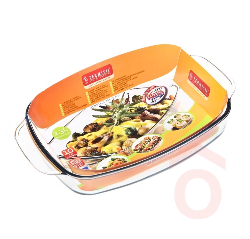 Hőálló üvegből készült sütőtál. Ellenáll a hirtelen bekövetkezendő hőmérséklet változásoknak és a karcolódásnak. Egészen -50°C és +500°C közötti hőmérsékleti tartományban használható, ezért kiváló főzéshez, sütéshez, ételeink tárolására a hűtőben, vagy melegítésére a mikrohullámú sütőben. Könnyedén tisztítható, nem szívja magába a szagokat, színeket.