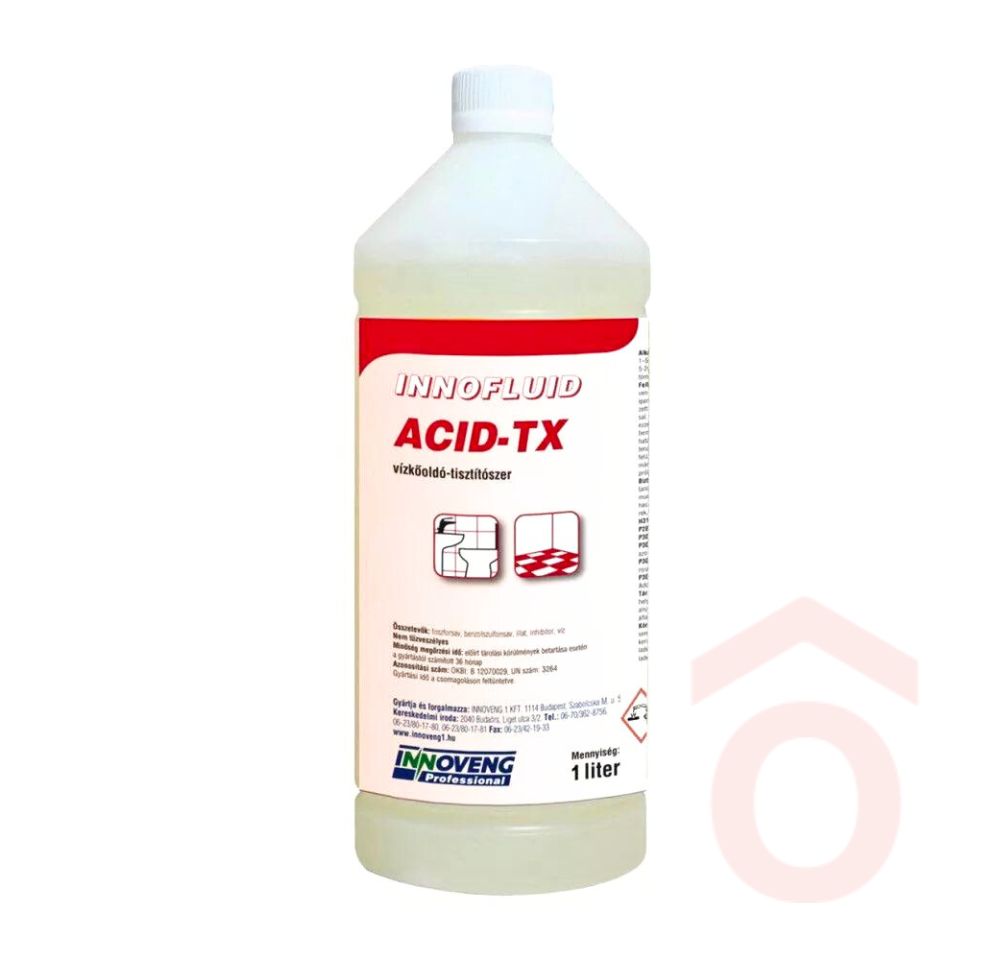 Az Innoveng Innofluid Acid-TX egy nem habzó, savas hatású vízkő- és rozsdaoldó tisztítószer koncentrátum, amely hatékonyan oldja az élelmiszeripari, egészségügyi és ivóvíz-kezelési rendszerekben keletkező vízkövet, tejkövet, borkövet, fémoxidokat és karbonátokat. Kisebb zsíros vagy szerves szennyeződések eltávolítására is alkalmas.