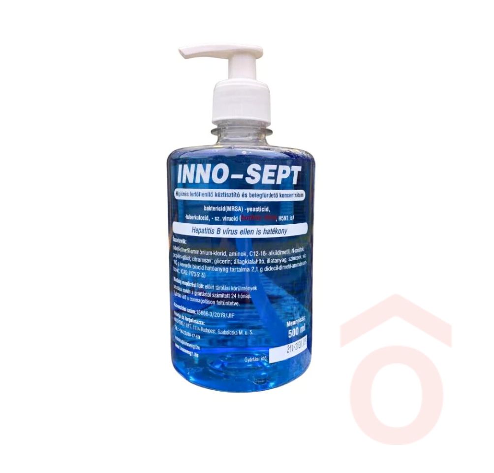 Az Inno Sept kézfertőtlenítő szappan egy pumpás kiszerelésű, alkoholos fertőtlenítőszer, amely megbízhatóan alkalmazható kézfertőtlenítéshez és alkoholálló felületek kezelésére. Alkalmas a magán- és közegészségügy, élelmiszeripar, vendéglátás, valamint a szolgáltató szektor mindennapi higiéniai feladataira.