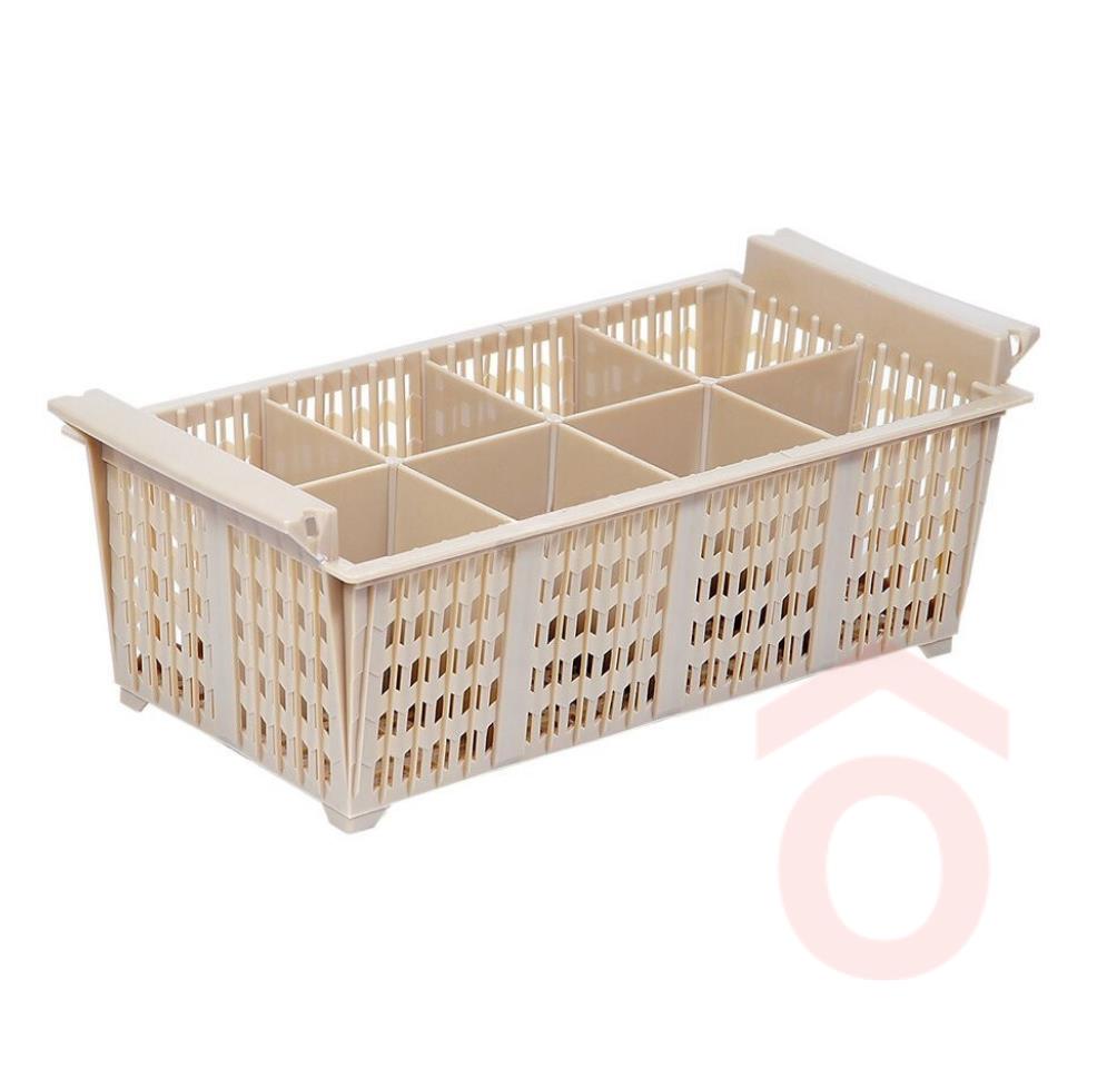 Műanyag 8 rekeszes evőeszköztartó nagyüzemi mosogatógéphez, nagyobb mennyiségű evőeszközök elmosásához használható konyhai eszköz.