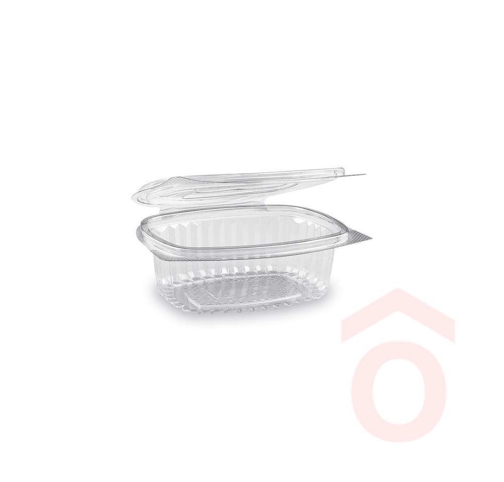 Szögletes formájú, egybefedles tálka. Kiszerelés: 50 db Szín: víztiszta Forma: ovális Anyaga: műanyag (PET) Űrtartalom: 250 ml