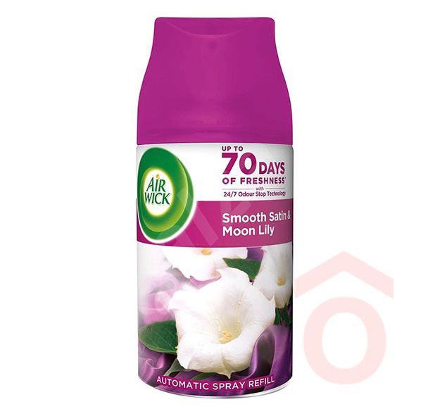 Az Air Wick Freshmatic utántöltő természetes illóolajokat tartalmaz, és akár 60 napig biztosít kellemes illatot, ha a készülék legalacsonyabb intenzitásra van állítva. A bársonyos szatén virágos jegyei elegáns frissességet visznek otthonod légkörébe.