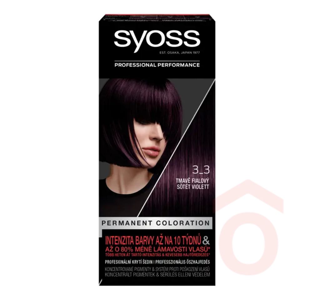 A Syoss tartós hajfesték 3_3 sötét violett árnyalatban intenzív, hosszan tartó hajszínt biztosít, miközben csökkenti a hajtöredezést. Koncentrált színpigmentjei mélyen behatolnak a hajszálakba, így a színhatás több héten át megmarad, 100%-os őszhajfedéssel és professzionális eredménnyel.