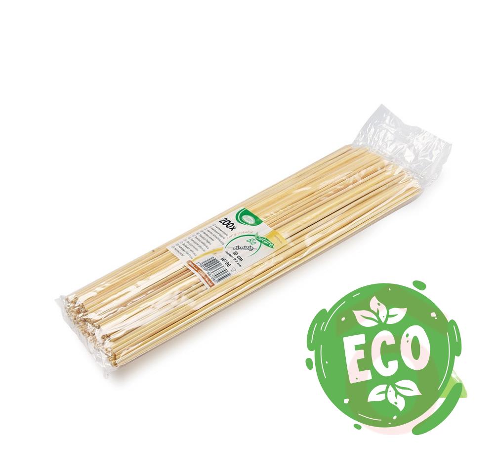 A pálca 100%-ban lebomló és komposztálható bambuszból készült, ami környezetbarát alternatívává teszi az egyszerhasználatos mûanyag nyársakkal szemben. A 200 darabos kiszerelés kifejezetten gazdaságos választás nagyobb eseményekre.
