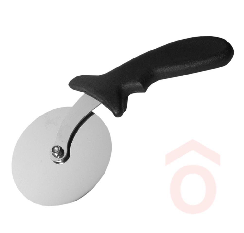 Rozsdamentes acélból készült pizza szeletelő műanyag nyéllel 10 cm, pizzák felvágására és tálalására használt konyhai eszköz.