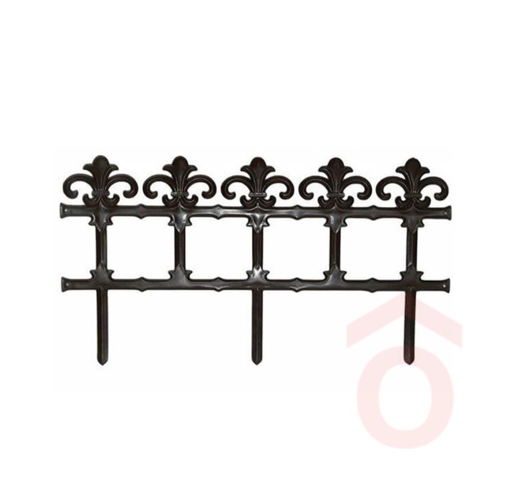 Rendkívül elegáns szegélykerítés, amely hasonlít a kovácsoltvas kerítésekre.Ez a kerítés könnyű és tartós. A kerítés egyes moduljai könnyen csatlakoztathatók a kényelmes kattintásos rögzítőrendszernek köszönhetően.Fagyálló, szinte elpusztíthatatlan a robusztus műanyag miatt, amelyből készült. A kerítés használható az ágy elhatárolására a kertből, virágokból, zöldségekből, utakból vagy csak díszítésből.Nagyon stabil és időjárásálló.
