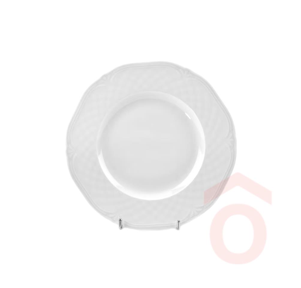 Elegáns, nem hivalkodó, mégis mutatós megjelenését a tányér peremén körben futó apró kockák adják, amelyek négy sorban követik egymást – finom, kifinomult keretet teremtve az ételeknek.