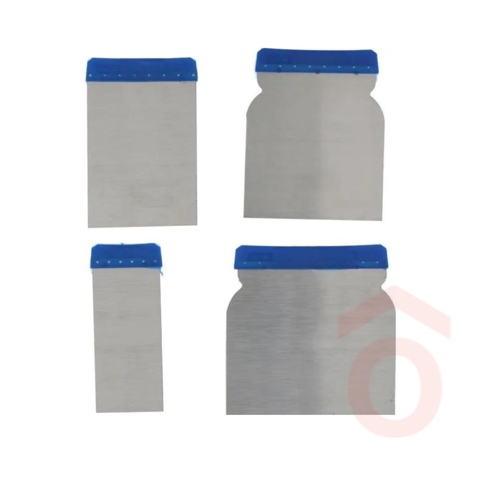 A spatulák rozsdamentes acélból készültek, műanyag hátlappal, ami kényelmesebb fogást és stabil kezelhetőséget biztosít. A készletben 50, 80, 100 és 120 mm szélességű kések találhatók, így mindig a feladathoz leginkább illő mérettel dolgozhatsz. A több méretnek köszönhetően a finomabb javításoktól a nagyobb felületek simításáig széles körben használható.