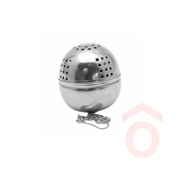 Kompakt, 4 cm átmérőjű teatojás finom lyukakkal a tiszta szűrésért. Strapabíró rozsdamentes acélból, horgos lánccal a csésze peremére akasztható – tökéletes választás laza tealevelek egyszerű áztatásához.