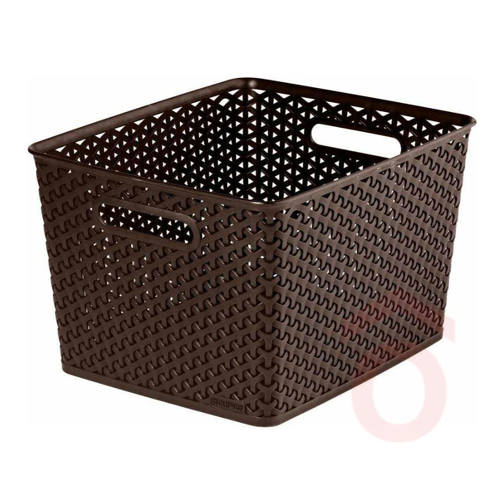Rattan hatású elegancia és praktikus tárolás egyben! A Curver My Style L-es méretű kosár barna színben nemcsak dekoratív, de sokoldalúan használható megoldás is a lakás bármely pontján. Ideális a fürdőszobába, nappaliba vagy hálószobába is. A perforált, rattan hatású kialakítás biztosítja a megfelelő szellőzést, míg kézreálló fogantyúi kényelmes használatot tesznek lehetővé.