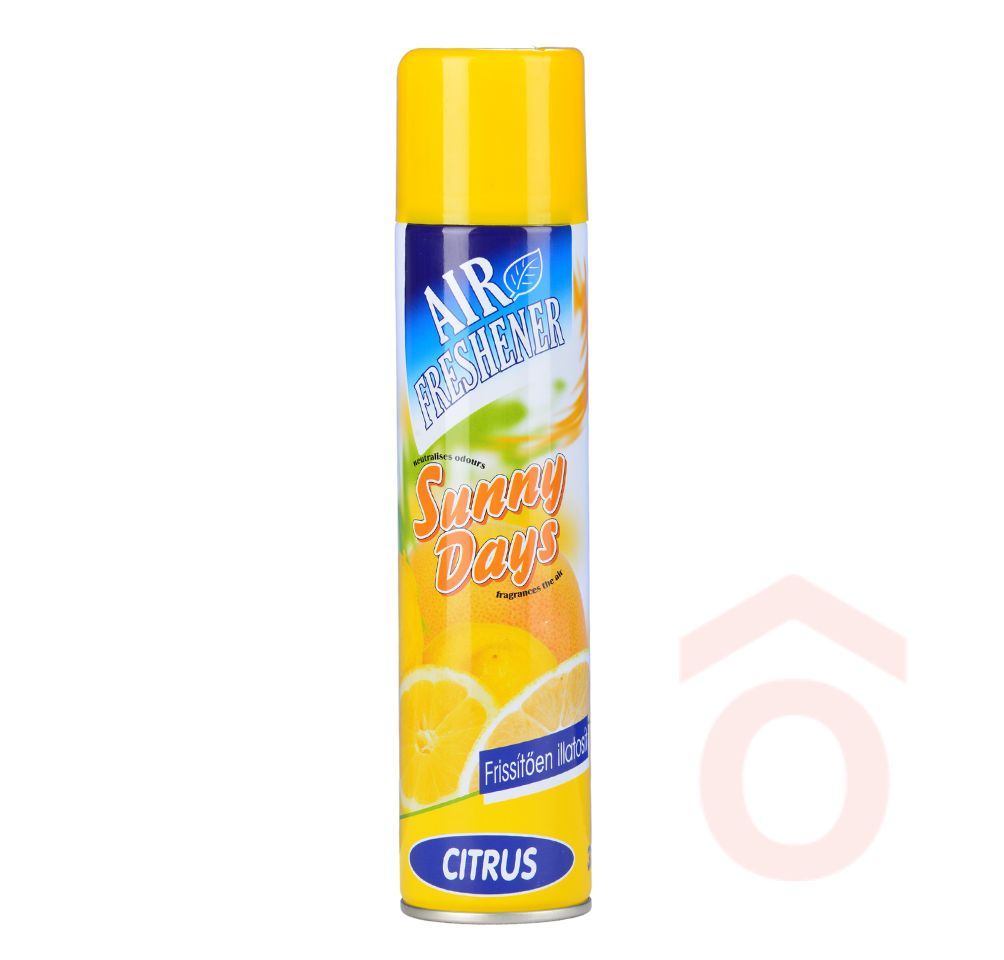 Az Air Freshener citrus illatú légfrissítő azonnal felfrissíti a levegőt és kellemes, üdítő illatot áraszt otthonában vagy munkahelyén. Könnyen használható aeroszolos kiszerelésének köszönhetően gyorsan semlegesíti a kellemetlen szagokat, miközben friss, tiszta érzetet hagy maga után.