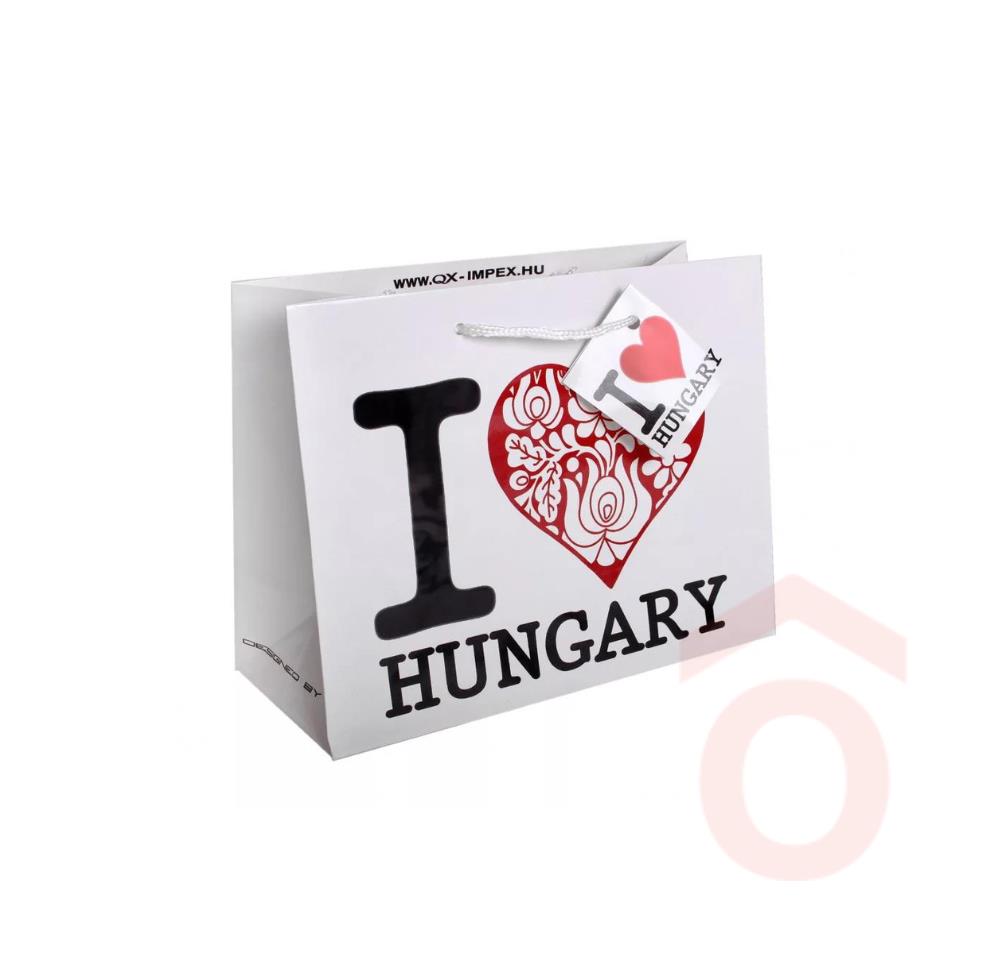 Stílusos, zsinórfüles ajándéktasak „I love Hungary” felirattal – tökéletes választás szuvenírekhez és alkalmi meglepetésekhez. A letisztult megjelenés és a karakteres felirat elegáns, ugyanakkor látványos csomagolást ad bármely ajándéknak.