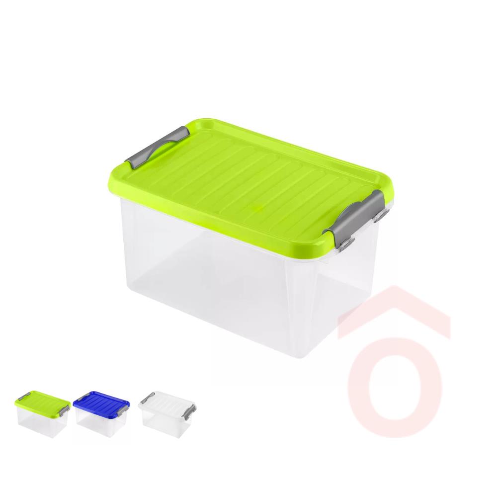 A doboz téglalap alakú, színes fedéllel és erősített sarkokkal rendelkezik, melyeket biztonságosan rögzítenek a klipek. Használható otthon, garázsban vagy műhelyben egyaránt, így ideális választás beltéri és kültéri tároláshoz is.