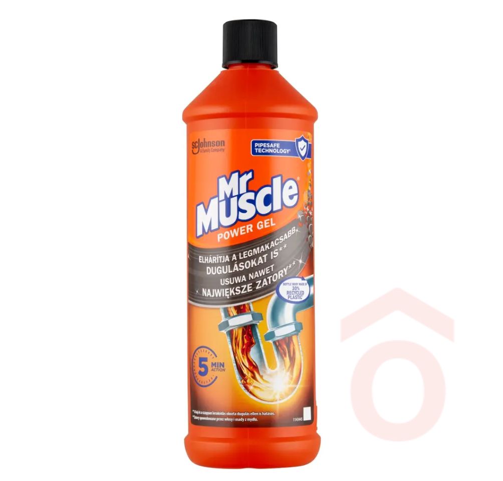 A Mr Muscle lefolyótisztító 5 perc alatt kifejti hatását, közvetlenül a dugulás helyén. Erőteljes formulája gyorsan feloldja a haj, szappanmaradék és zsírlerakódás okozta elzáródásokat, így megszünteti a teljes dugulásokat is.